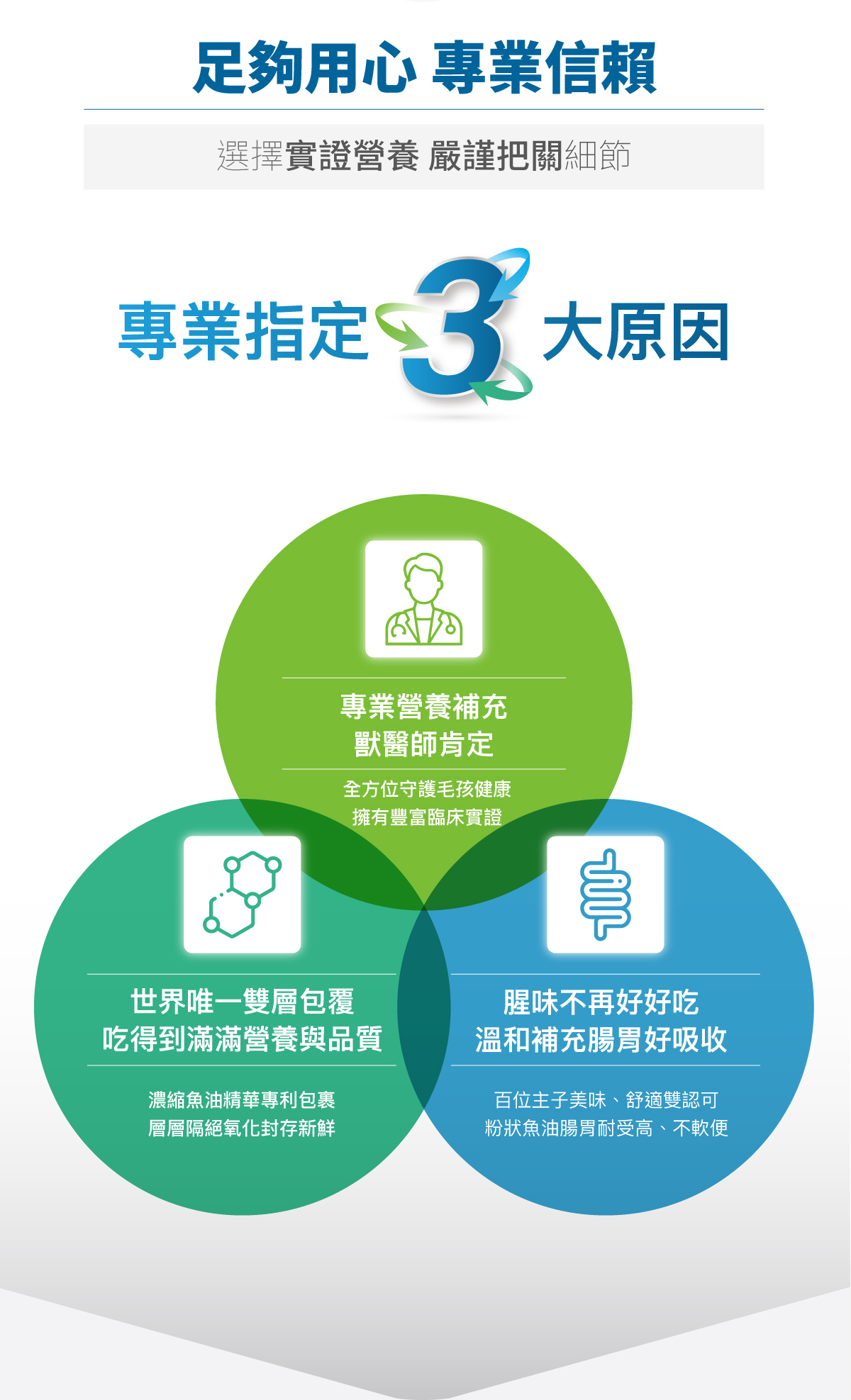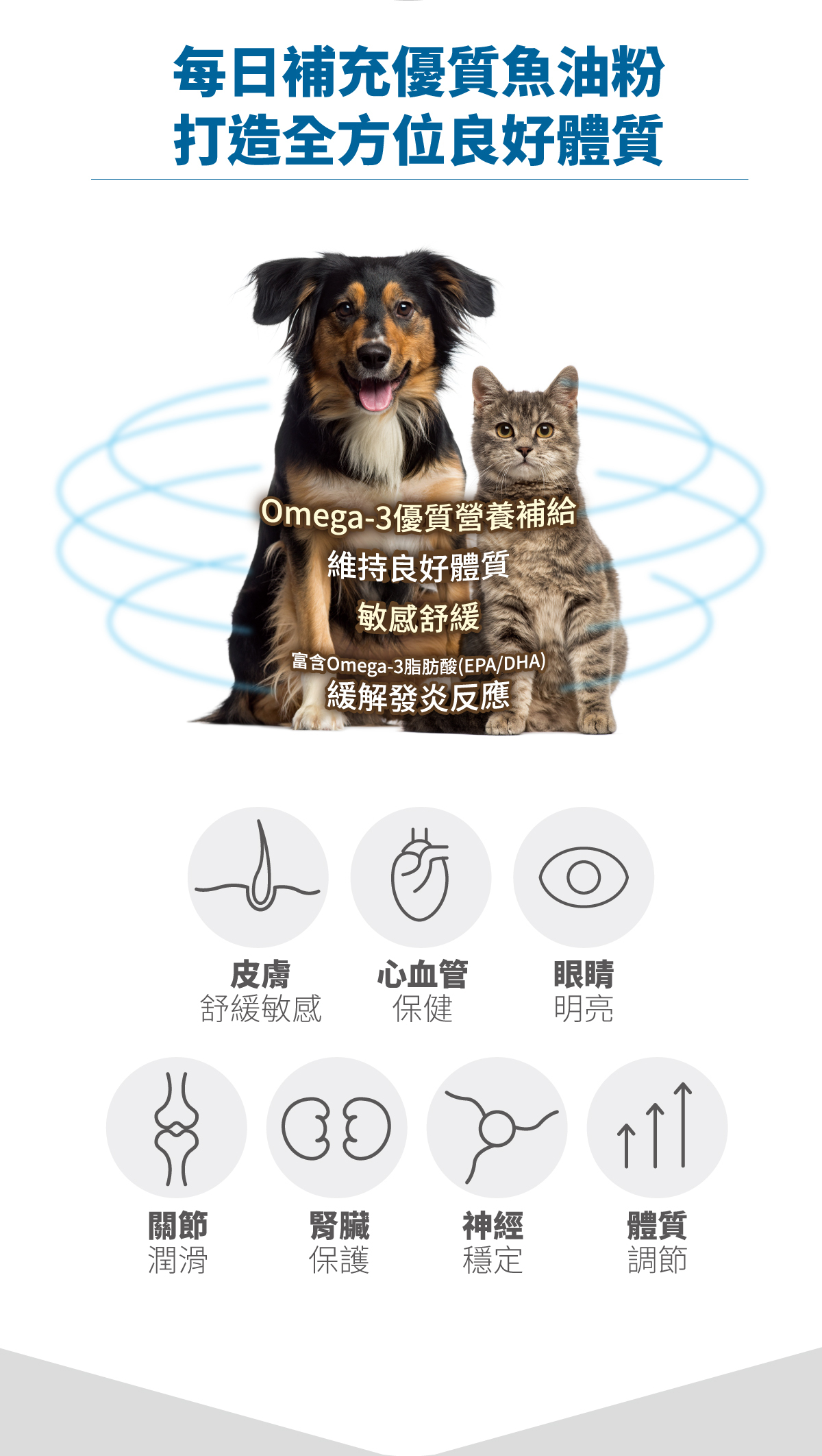 - Omega-3 優質營養補給:強化體質、敏感舒緩