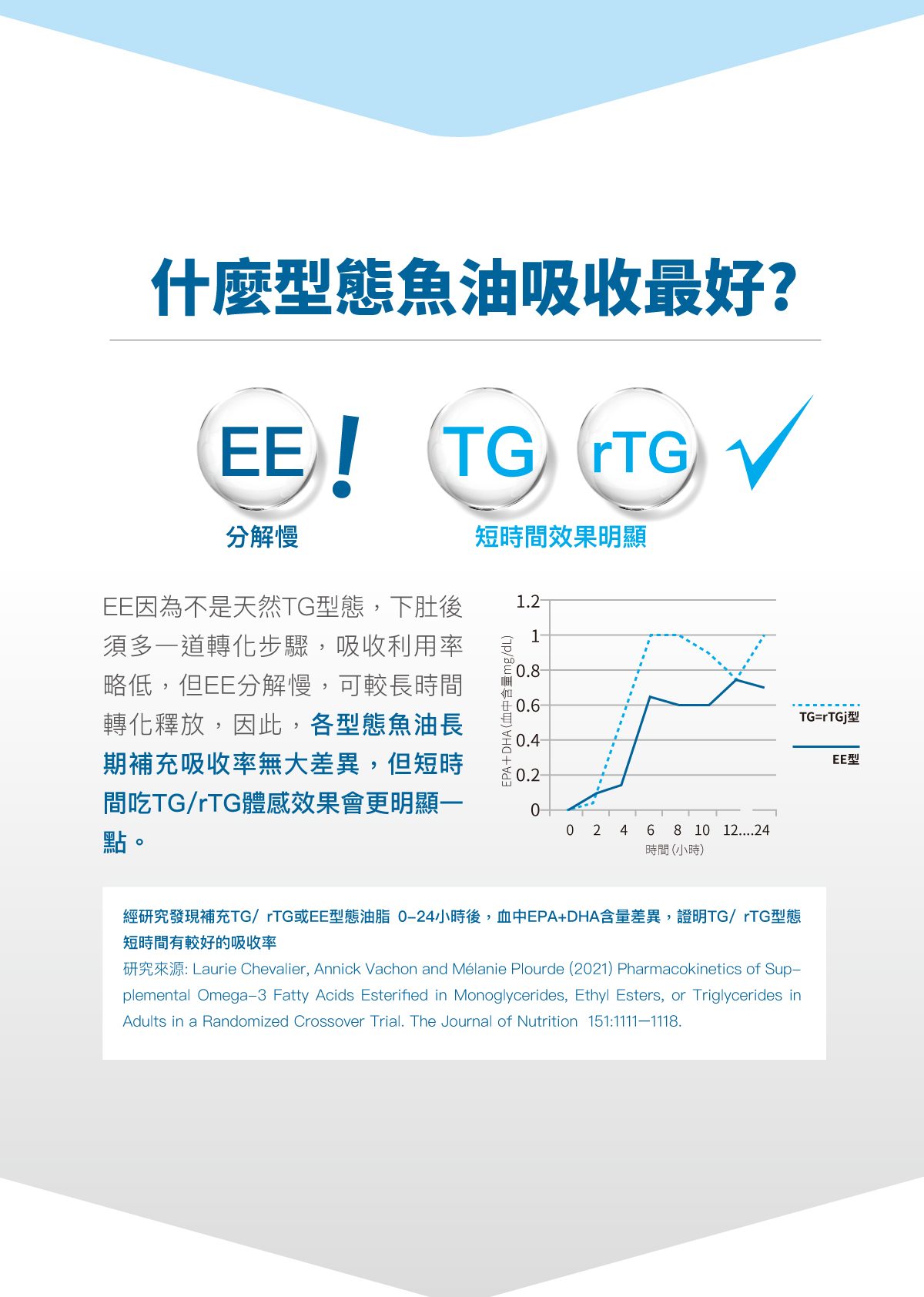 - 富含 Omega-3 脂肪酸 (EPA / DHA),可針對發炎反應