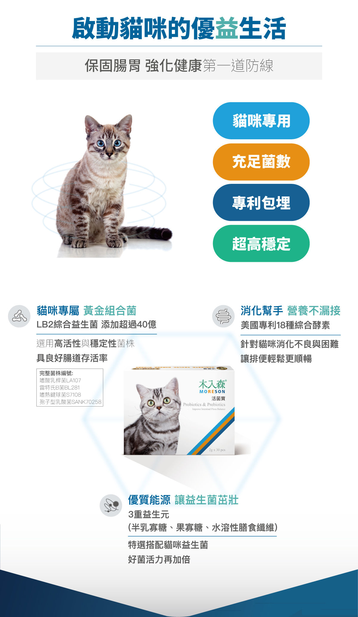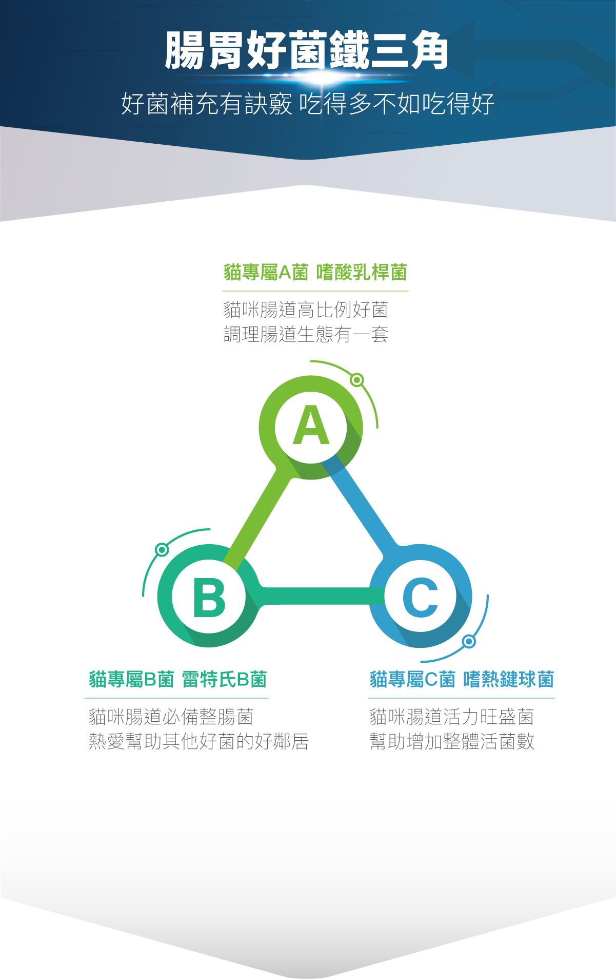 貓咪70%的免疫細胞在腸道,腸道好菌多多不只增強防護力,更能有效吸收利用,讓健康加分