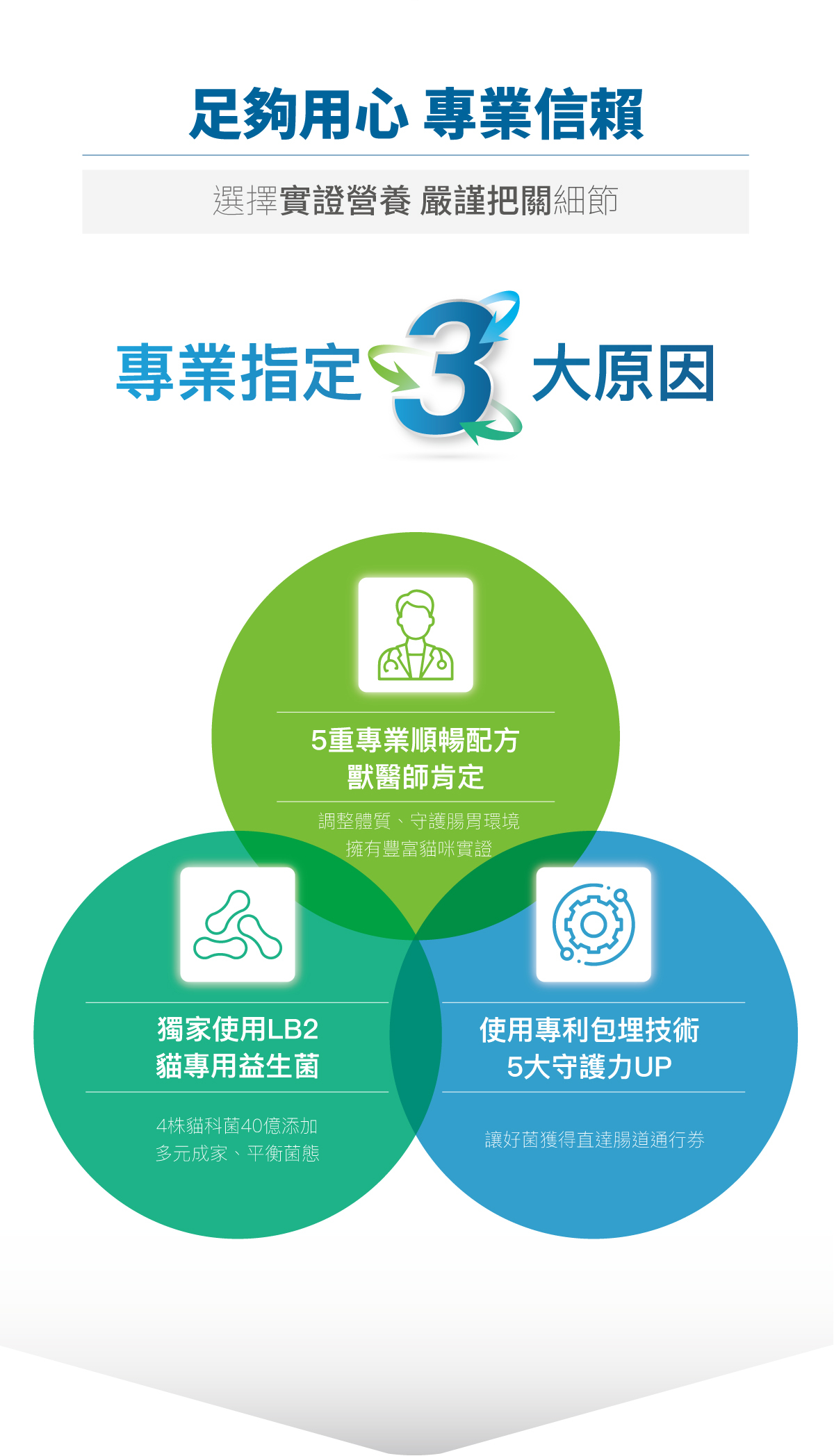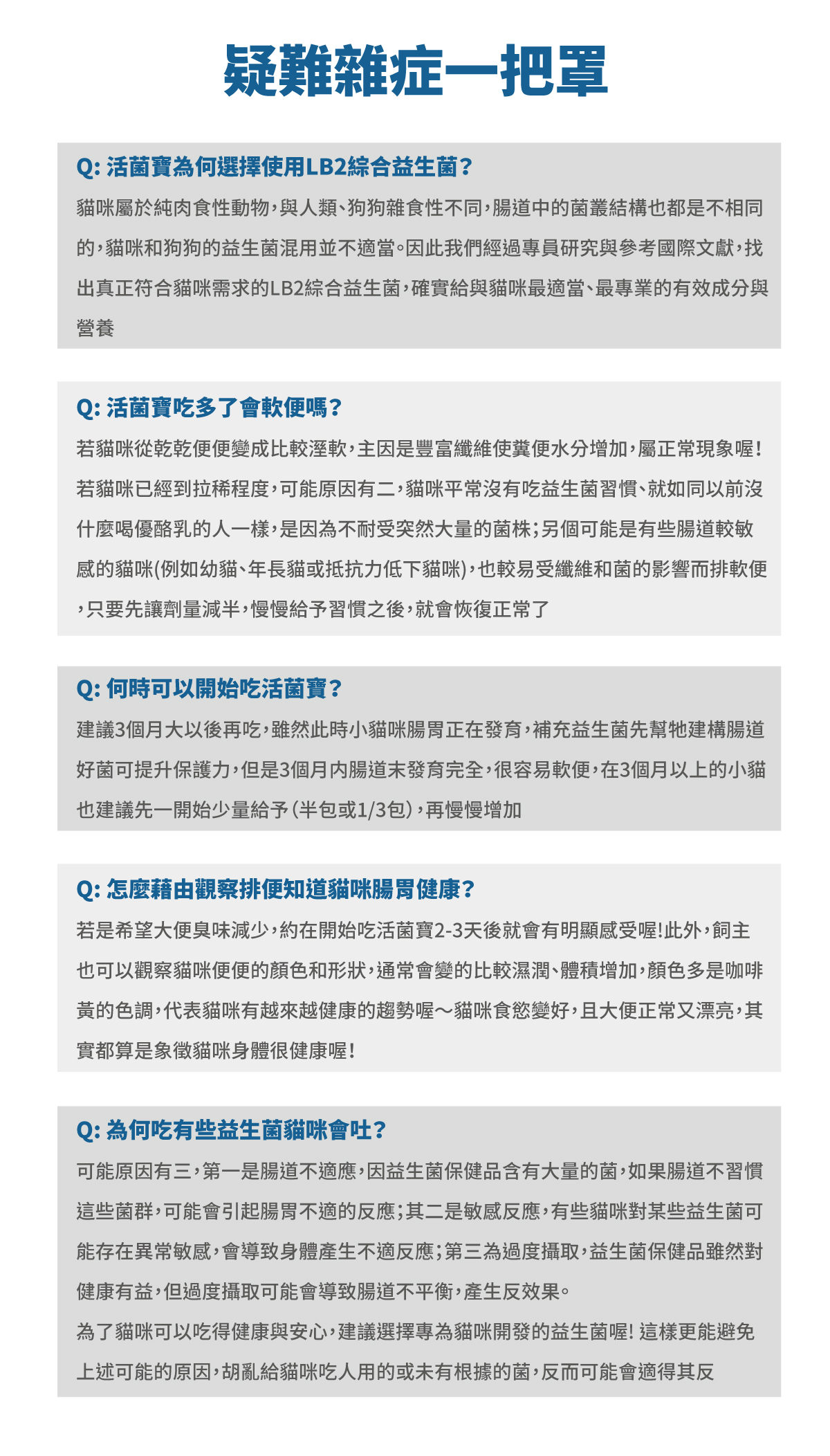 因此我們經過專員研究與參考國際文獻,找出真正符合貓咪需求的LB2綜合益生菌,確實給與貓咪最適當、最專業的有效成分與營養